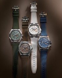 Die Overseas Dual Time Cardinal Points ist ein direkter Nachfolger des Modells, das für den Fotografen und Entdecker Cory Richards entwickelt und 2019 bei seiner Everest-Besteigung unter extremen Bedingungen ausgiebig getestet wurde. Sie ist in verschiedenen Farbtönen erhältlich. Das 41-mm-Gehäuse, das integrierte Armband und die austauschbare Faltschließe sind aus Titan gefertigt, das aufgrund seiner Leichtigkeit und Festigkeit ausgewählt wurde. Die unverwechselbare Ästhetik und die hohen Leistungsqualitäten von Titan werden durch eine matte anthrazitgraue Oberfläche auf der Lünette, der Krone und dem Drückerring noch verstärkt. Dies schafft einen subtilen Kontrast, der die Ausschnitte hervorhebt, die die Form des Malteserkreuzes auf der charakteristischen Lünette der Overseas widerspiegeln. Bei näherer Betrachtung des Zifferblatts lassen sich nach und nach seine Details entdecken, wobei verschiedene Oberflächen für Tiefe und Raffinesse sorgen. Die orangefarbenen Zeiger, die die zweite Zeitzone und die AM/PM-Funktion anzeigen, setzen einen Kontrast zum Zifferblatt und unterstreichen den sportlichen Charakter der Uhr. Dank ihrer drei leicht austauschbaren Armbänder – zwei aus Kautschuk und eines aus Titan – ist die Uhr individuell anpassbar.