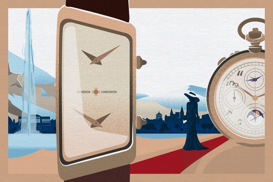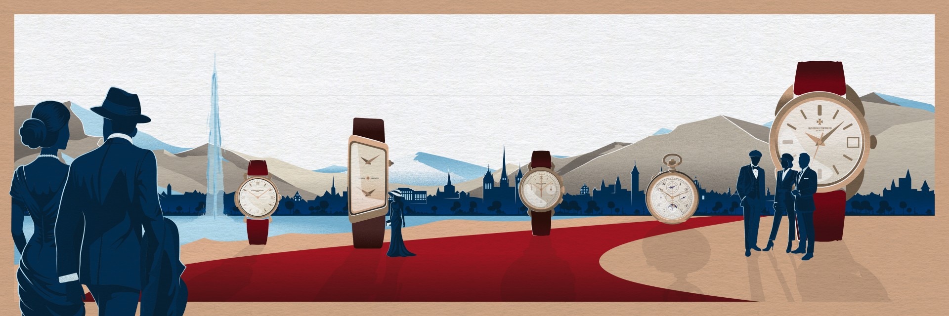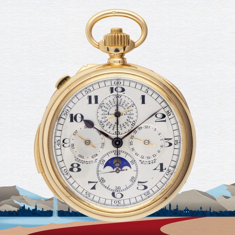 ساعات الجيب وساعات اليد التي تشتمل على تصميم ڤاشرون كونستنتان المميّز، سواء في العلبة أو من خلال عرض الوقت - العرض التراجعي أو الساعة القافزة أو التوقيت العالمي، إلخ.